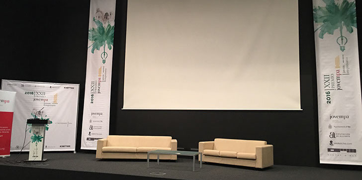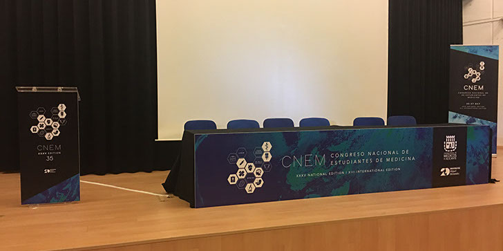 Lonas laterales y photocall con estructura fija.